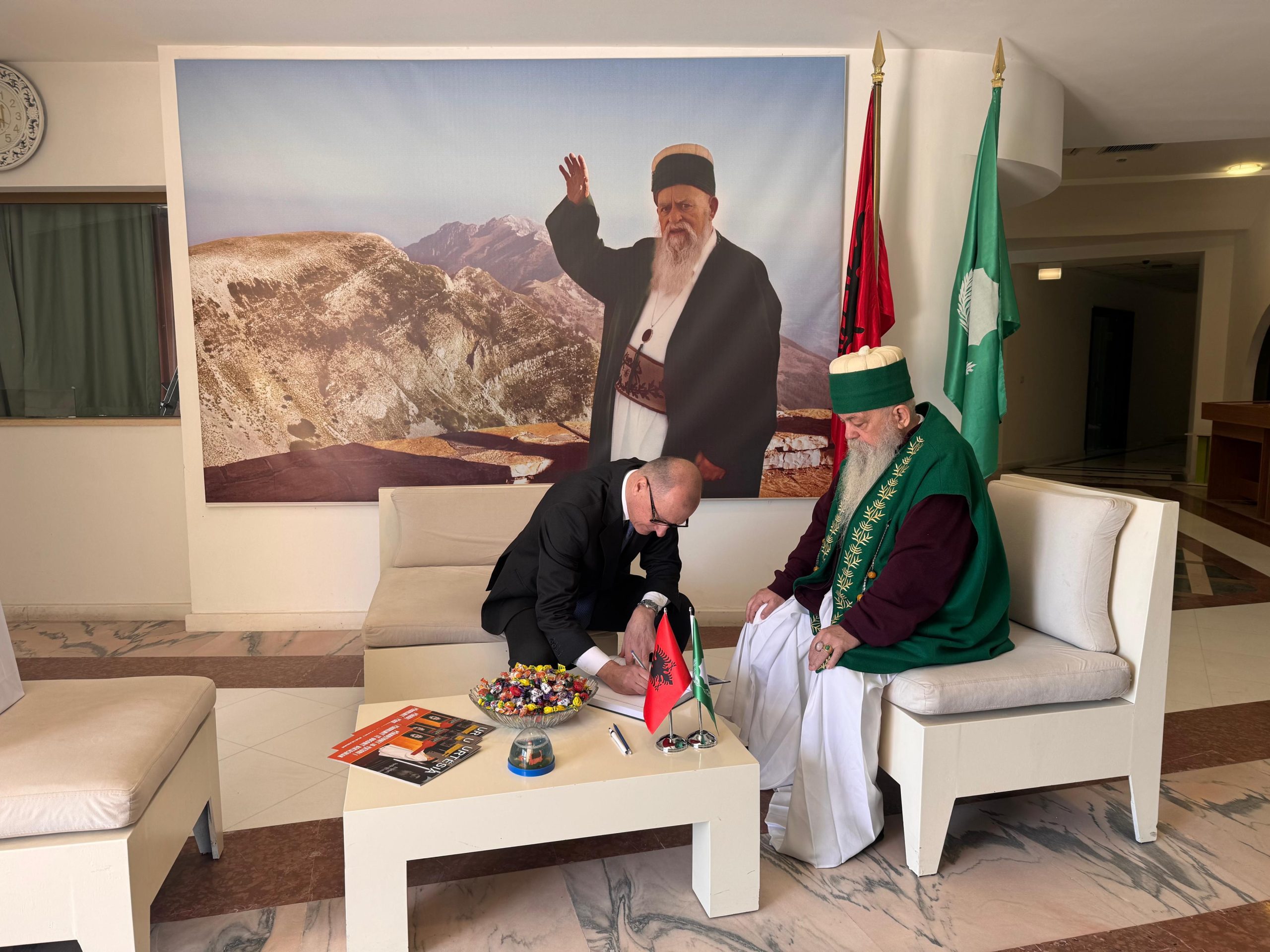 Më datë 30 mars 2026, në Selinë e Shenjtë të Kryegjyshatës Botërore Bektashiane në Tiranë, u zhvillua një takim kortezie ndërmjet Sh.T. Ambasadorit të Republikës së Serbisë në Tiranë, z. Slobodan Vukčević, dhe Kryegjyshit Botëror të Bektashinjve, Haxhi Dede Baba Edmond Brahimaj.