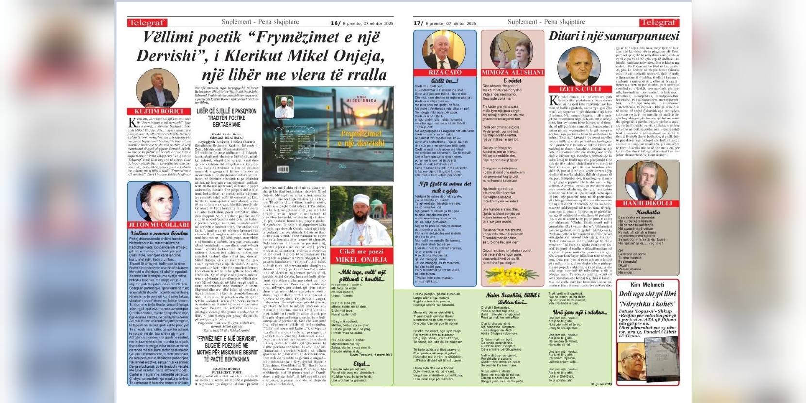 7 Nëntor, 20257 Nëntor, 2025KRYESORE, LAJME VËLLIMI POETIK “FRYMËZIMET E NJË DERVISHI”, I KLERIKUT MIKEL ONJEJA, NJË LIBËR ME VLERA TË RRALLA -Libri i botuar nën kujdesin e Kryegjyshit Botëror Bektashian, Haxhi Dede Baba Edmond Brahimaj Nga Kujtim BORIÇI Këto dit, doli nga …