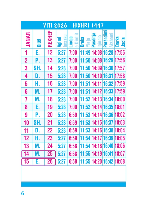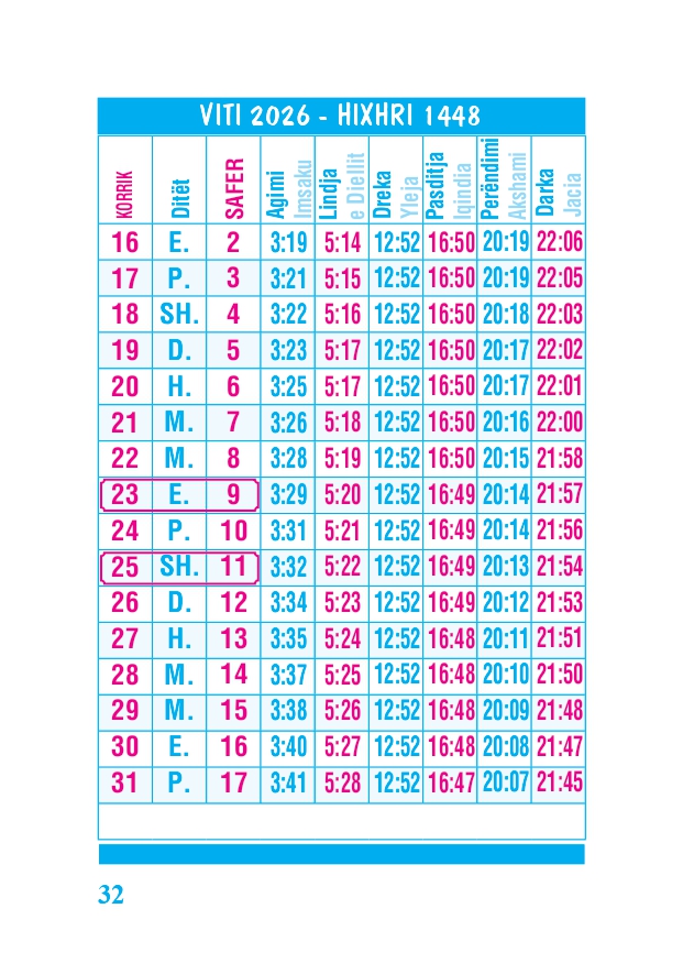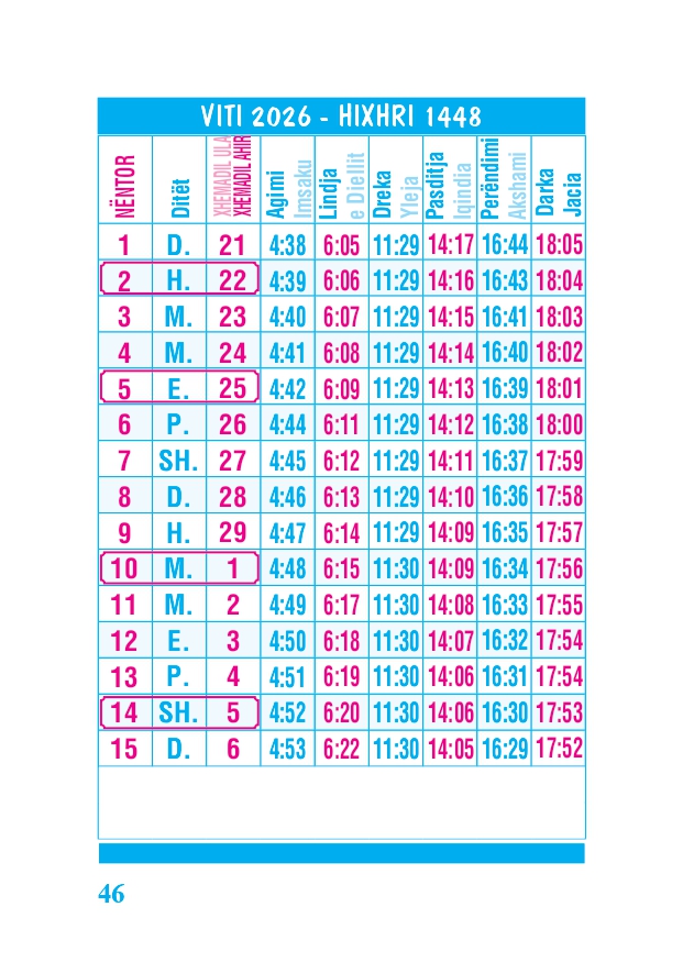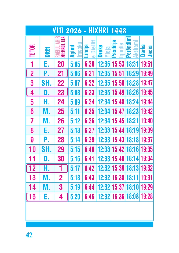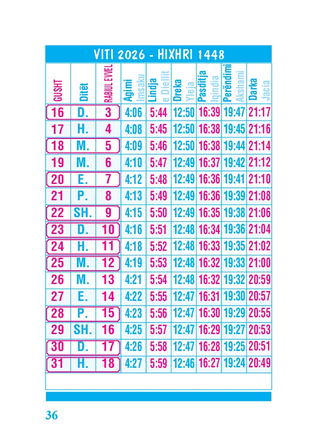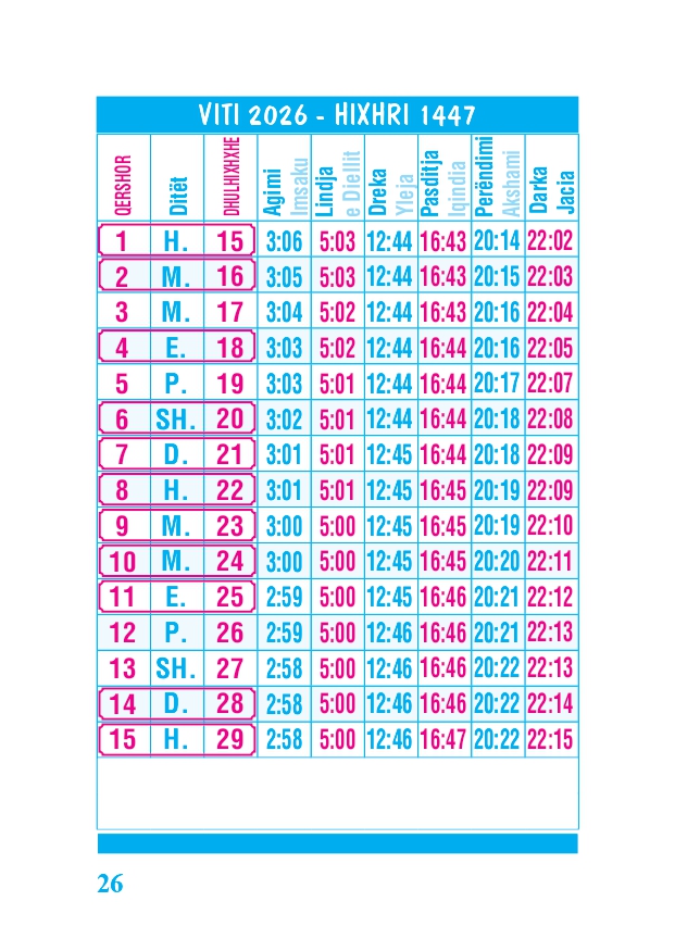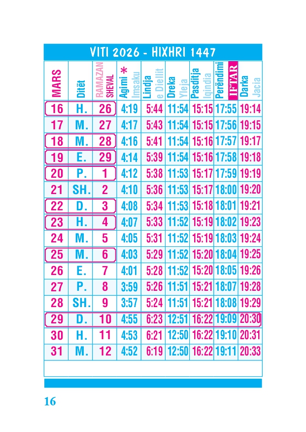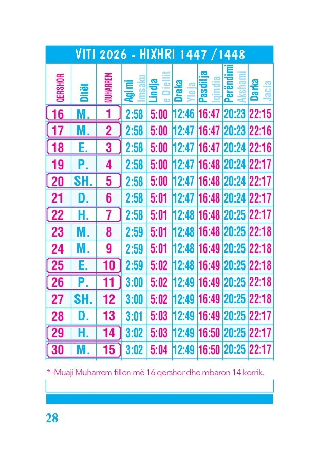 KALENDARI I MADH 2026