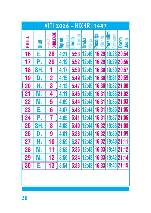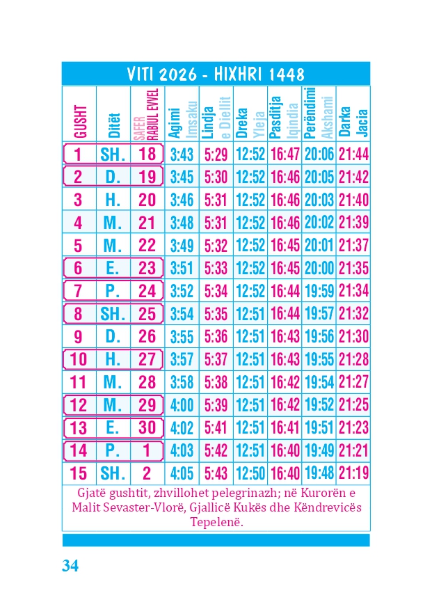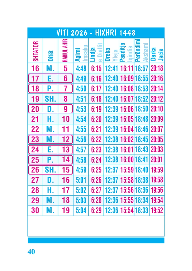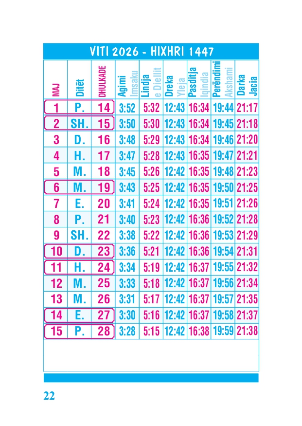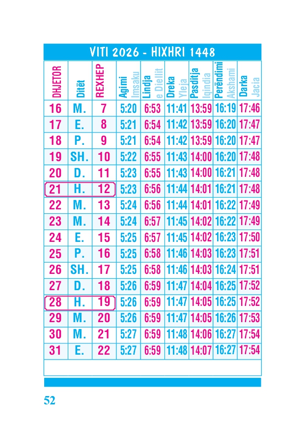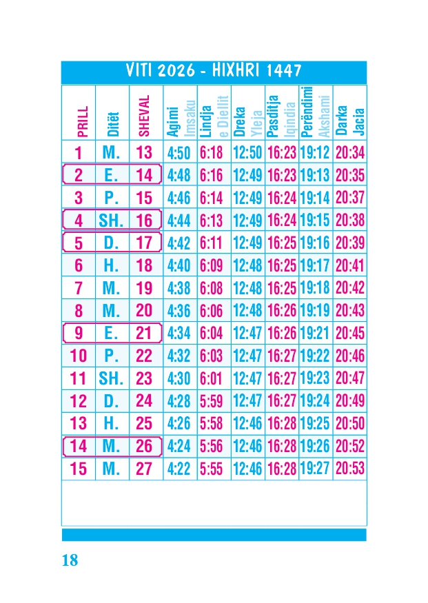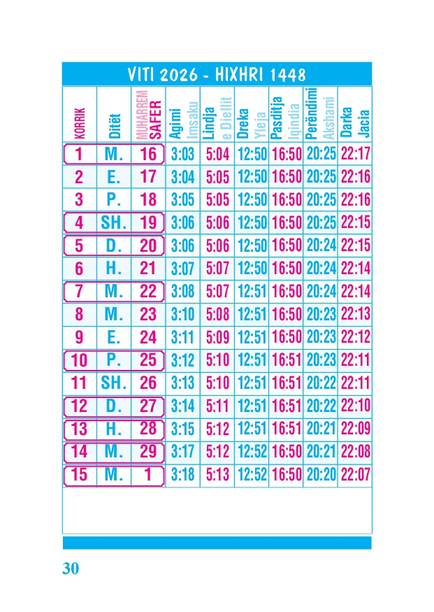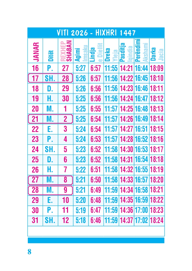 KALENDARI I MADH 2026