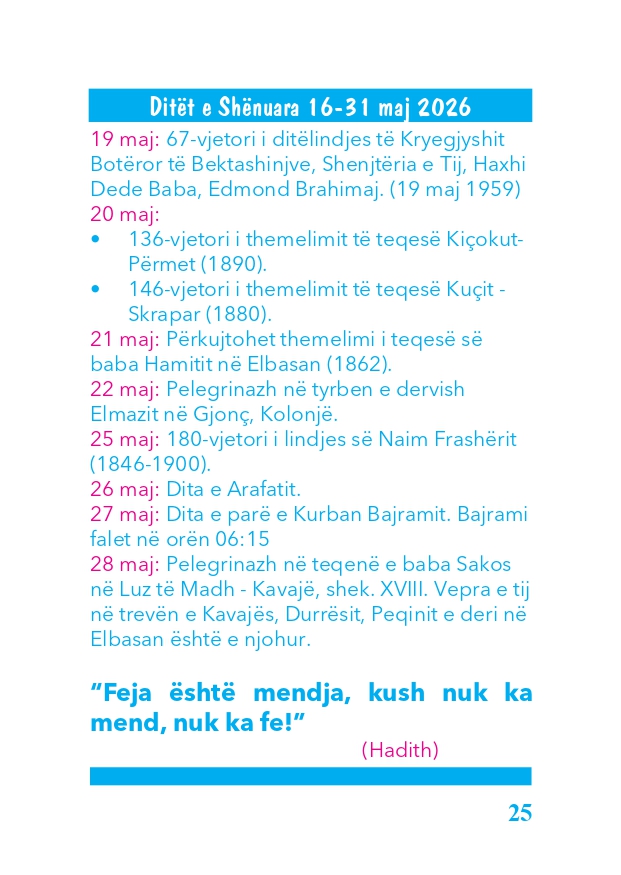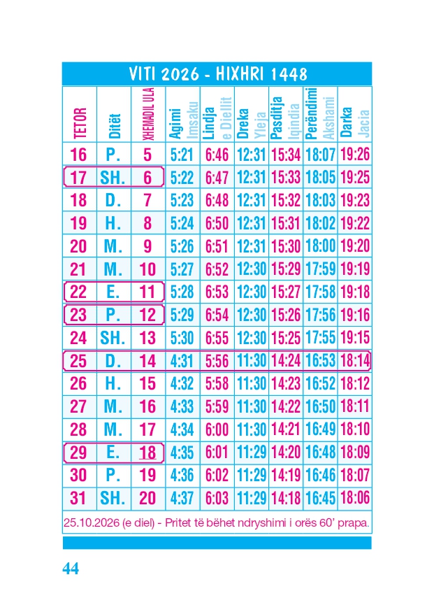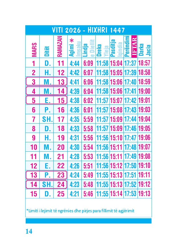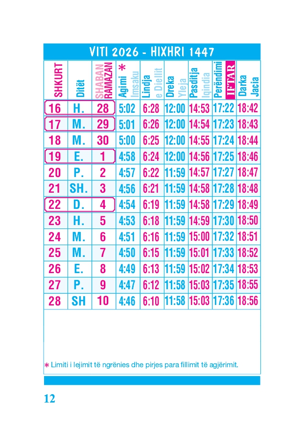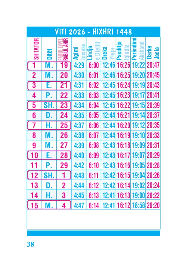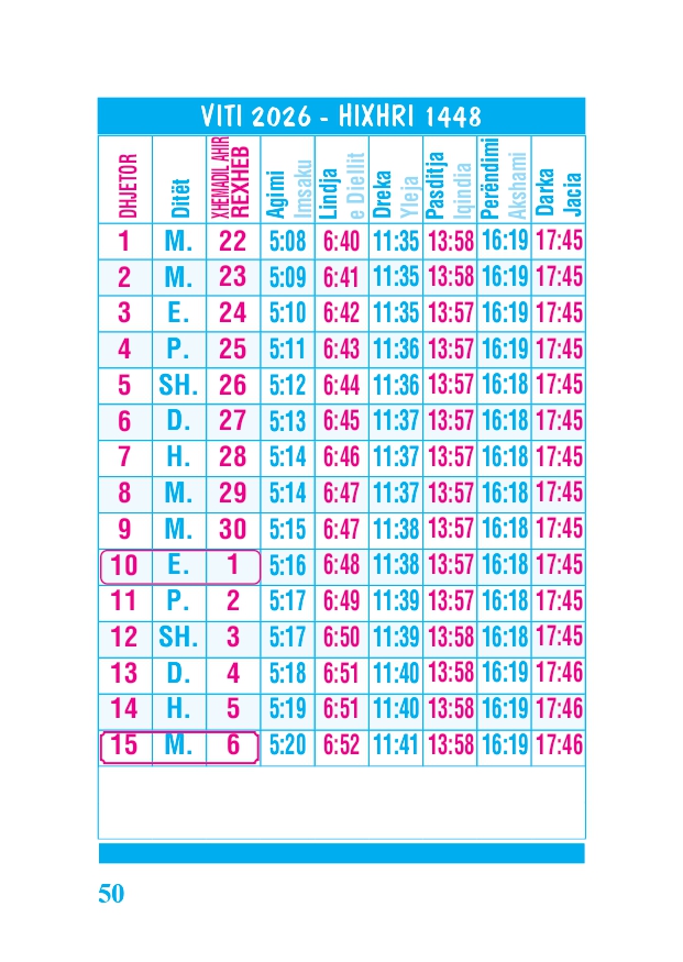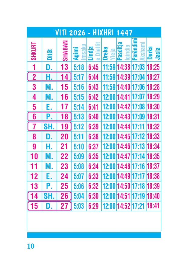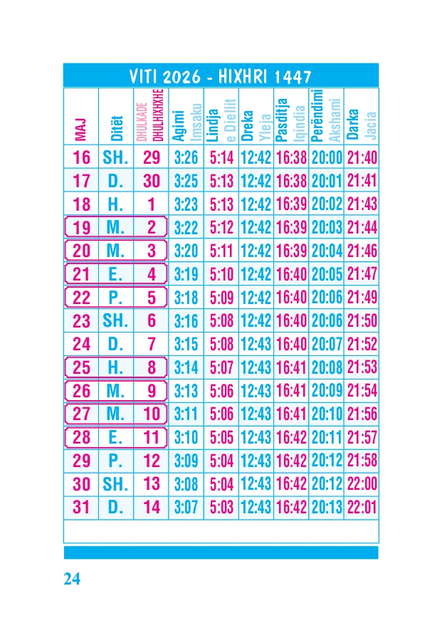 KALENDARI I MADH 2026