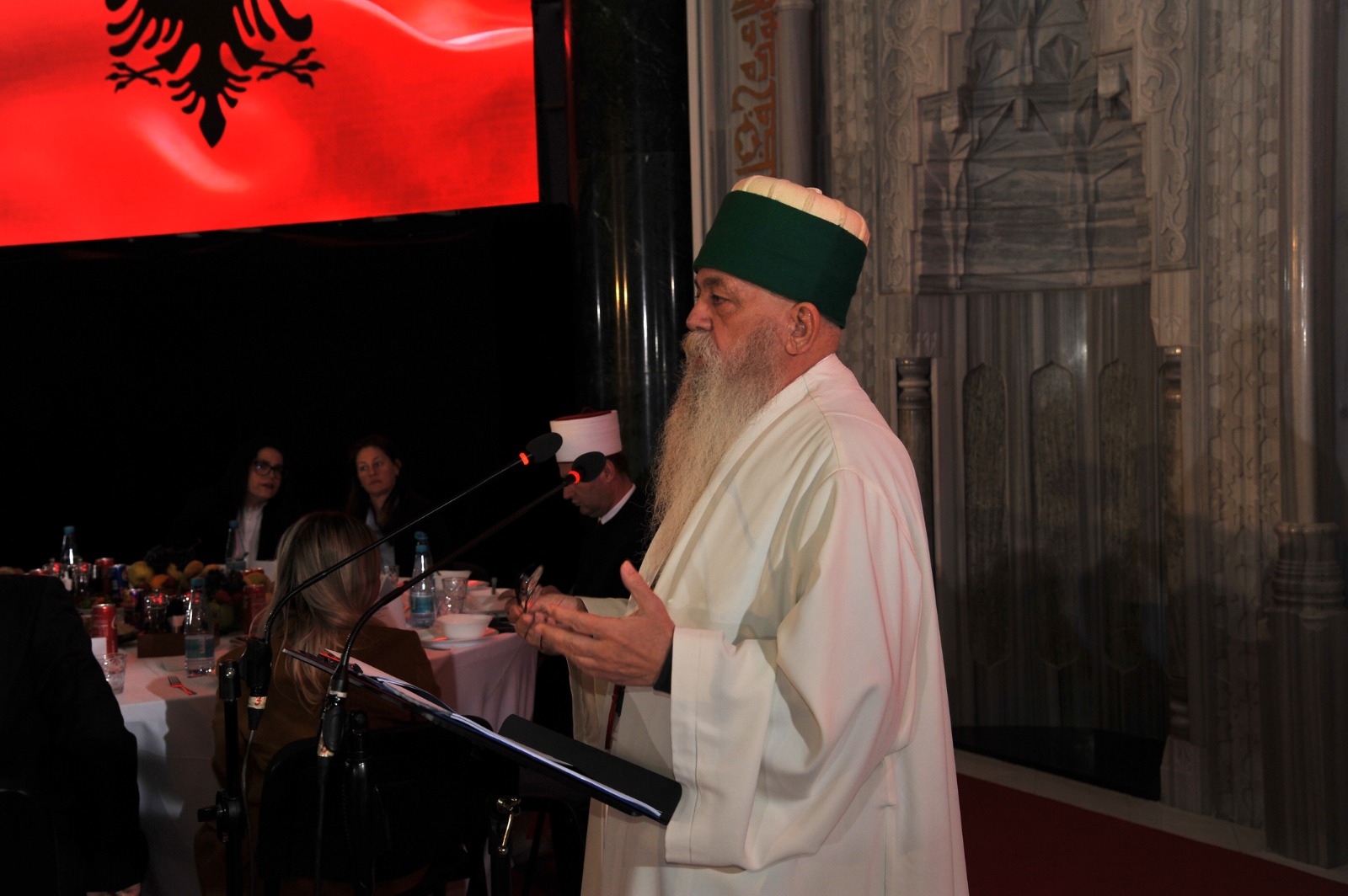 “Të nderuar klerikë vëllezër të mijë bektashinj dhe përfaqësues të Komuniteteve te ndryshme fetare në Shqipëri! Të nderuar Ministra, diplomatë, zyrtarë të lartë shtetërorë! Të nderuar vëllezër dhe motra, mysafirë të respektuar që agjëroni! Është një nder i veçantë dhe një privilegj i madh t’Ju mirëpres, në këtë darkë Iftari të muajit të Shenjtë të Ramazanit, duke ndarë së bashku bekimet e iftarit dhe reflektimin mbi vlerat e devotshmërisë, solidaritetit dhe mëshirës. Ky muaj i shenjtë është një thirrje për vetëpërmirësim dhe për reflektim mbi marrëdhëniet tona me Zotin dhe me njëri-tjetrin. Siç na mëson Kurani i Madhërueshëm: “O besimtarë! Ju është obligim agjërimi, ashtu si ka qenë obligim për ata që kanë qenë para jush, për t’u bërë ju të devotshëm.” (Sureja Al-Bekare, 2:183)